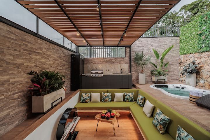 Cuenta con piscina privada climatizada, perfecta para relajarse. Además con un Jacuzzi privado, mesa de billar, sauna y más de 700 metros cuadrados construidos para disfrutar! La casa también cuenta con amplias áreas comunes, como una sala de estar elegante y confortable, perfecta para compartir momentos especiales con tus seres queridos. La cocina completamente equipada te permitirá preparar deliciosas comidas, si deseas explorar tus habilidades culinarias durante tu estancia.